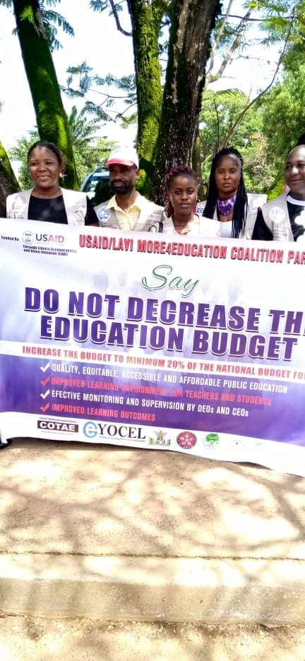 The More4 Education Campaigners said due to their advocacy, Education budget was increased from 14.5% to 15.7% over the period of two years, but was shocked to find out that the draft national budget of 2020/2021 has decreased the Education budget to 14.6% thus causing serious setback for the campaign and education in Liberia as a whole.