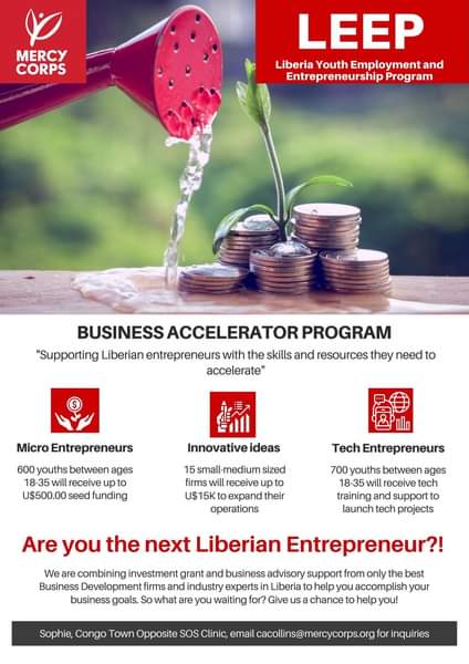 So if you think you meet the criteria listed above, visit the emansion website and download a copy of the application guideline. There will also be proposal development support days to help applicants understand the application requirements. If you need more information, please visit Mercy Corps’ Office in Congo Town Opposite the SOS Clinic.