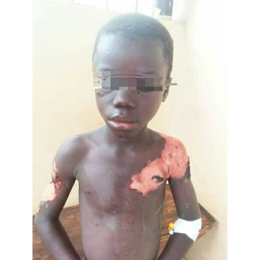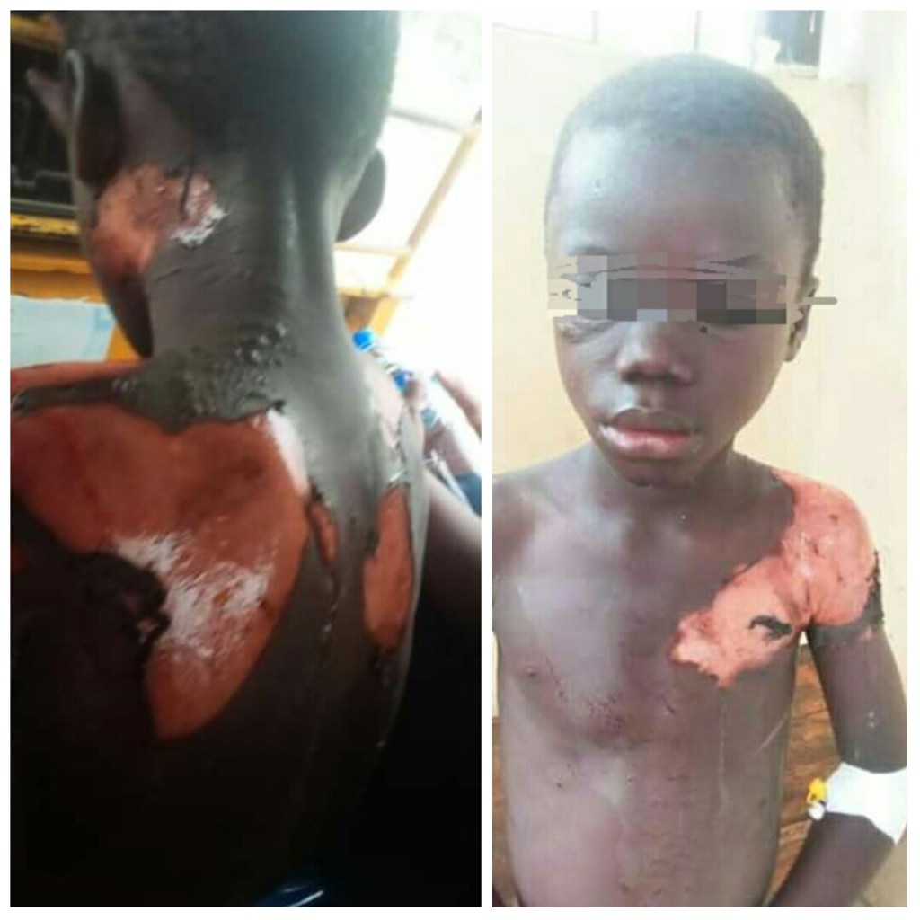 When the incident occured the victim Emmanuel Flomo were immediately accompanied at the office of the Women and Children Protection Section of Zone10 police substation in Doe Community due to his critical condition which caused him to suffered severe pain from the burn he sustained.