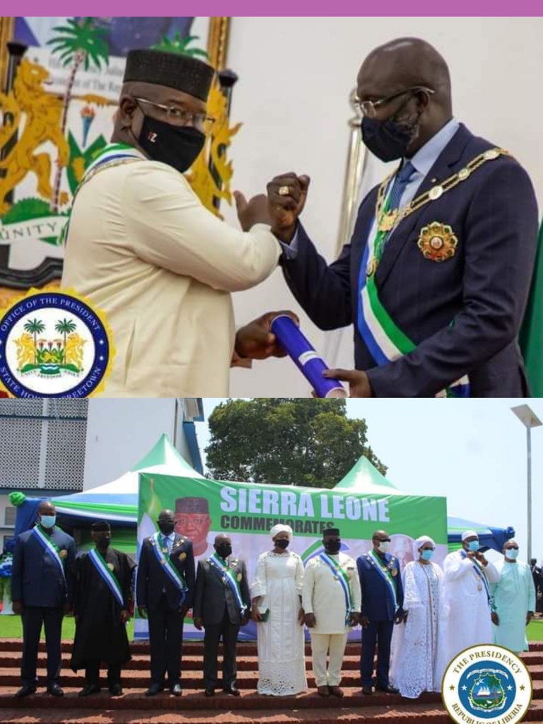 (Monrovia, Liberia): The President of the Republic of Liberia, H.E. Dr. George Manneh Weah, on Tuesday, April 27, 2021 was awarded Sierra Leone’s prestigious honor, The Most Distinguished Grand Commander of the Republic of Sierra Leone. The Liberian Leader was also hailed for fostering peaceful coexistence and his service to humanity.