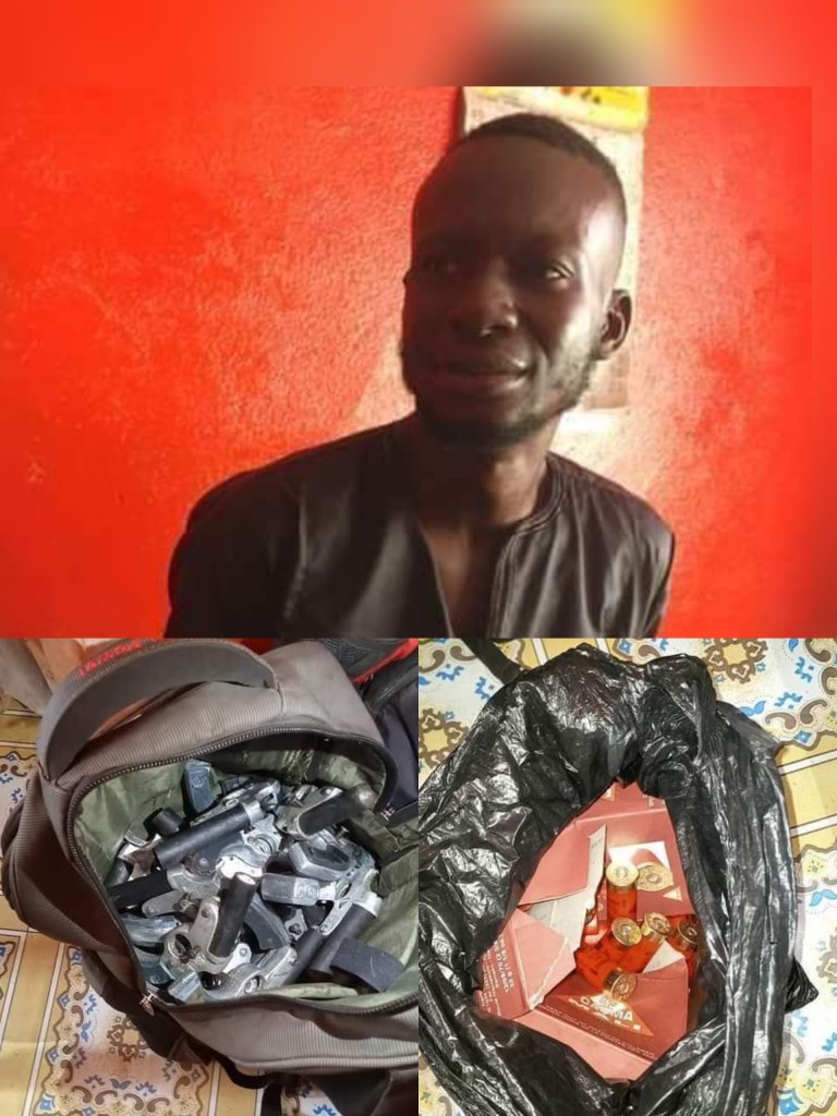 Ganta, Nimba County- May 7, 2021: Layee Zayzay, the man who was arrested on Wednesday May 5, 2021 in Ganta, Nimba County at the Liberian-Guinean border with twenty (20) packs of fire arms and five (5) packs of rounds while crossing to Liberia from Guinea has said to Reporters in the county that he was transporting the fire arms and rounds to River Cess County for business purposes.