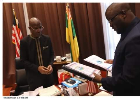 Acting Finance Minister Dr. Samora P.Z. Wolokolie presented the draft fiscal instrument to House Speaker Dr. Bhofal Chambers on Tuesday.
