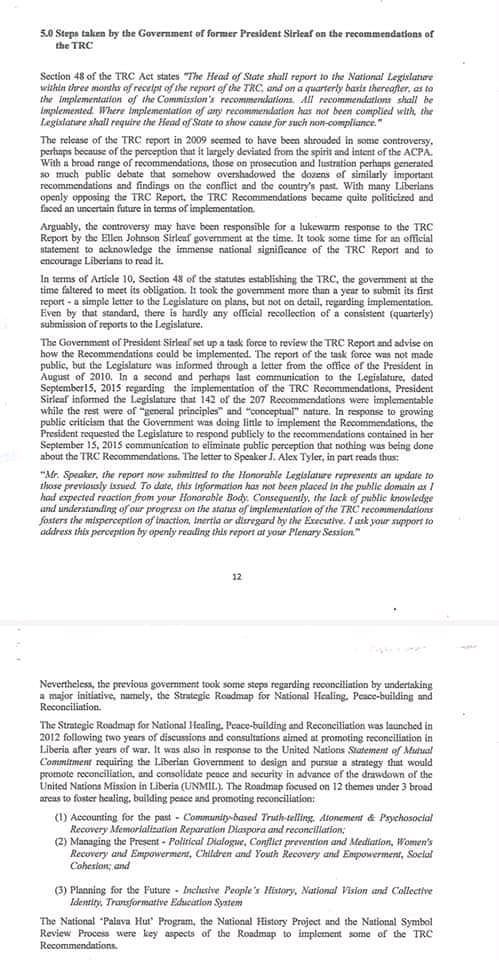 To review the work and recommendations of the TRC,when necessary,and make additional recommendation when necessary,such as how far back in Liberia’s history should the transitional Justice process go,and