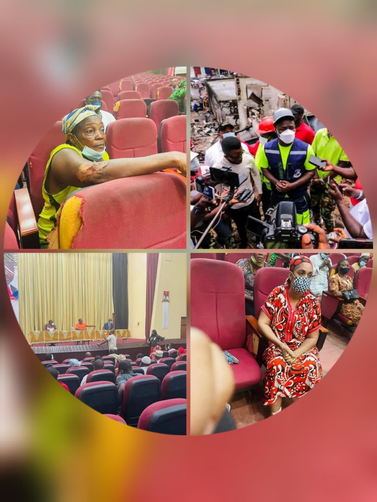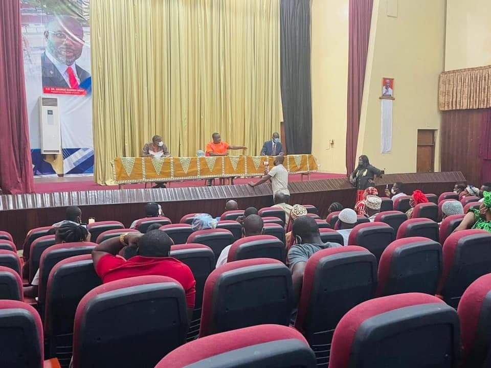 Monrovia, Liberia- August 17, 2021: Monrovia City Mayor Jefferson T. Koijee on Monday, August 16, 2021 held a meeting with victims over the outbreak of fire that ravaged a number of homes and businesses in Waterside, Monrovia.