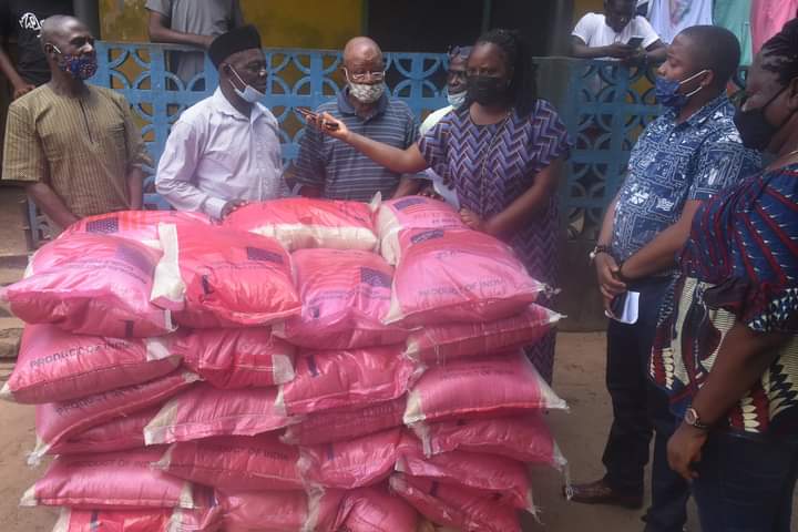 New Kru Town Vice Governor, Mr. Wle Wle Kofa along with other leaders of New Kru Town and neighboring communities received the donation. Based on a list of affected persons submitted to the university, 40 bags of 25kg rice were distributed to beneficiaries during the visit.