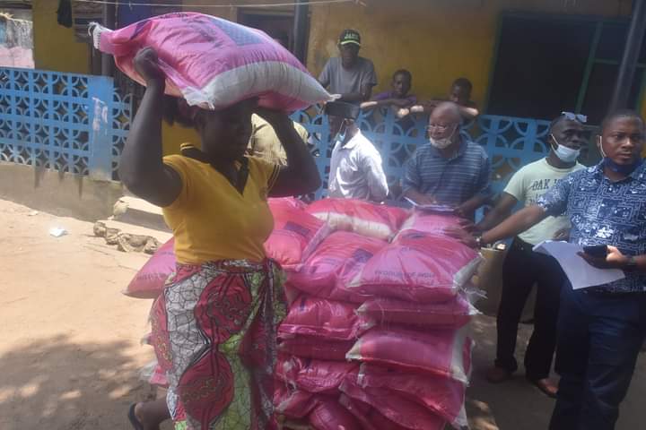Monrovia- August 23, 2021: The President of the University of Liberia (UL), Rev. Prof. Dr. Julius Julukon Sarwolo Nelson, Jr., has come to the aid of erosion victims in New Kru Town with the distribution of 40 bags of 25kg rice, following a recent disaster that left dozens of family heads and their children seeking shelter in school buildings and Churches.