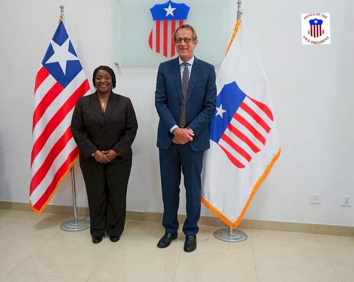 The first female Liberian Vice President spoke Monday, October 4, 2021, at her Capitol Building Office when she received in her audience the United Nations Resident Coordinator in Liberia Ambassador Neil Scott.