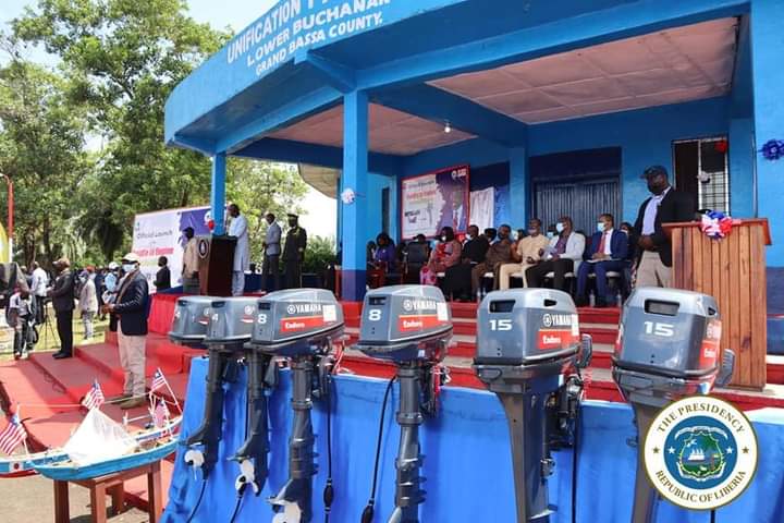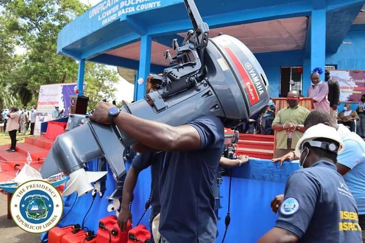 Launching the project Saturday, October 23, 2021, in Buchanan, Grand Bassa County, President Weah expressed delight over the launch of the Liberia Motorized Canoe Project, which includes the first consignment of 420 Yamaha outboard motors by the Liberia Fisheries and Aquaculture Authority on behalf of Liberian fishermen.