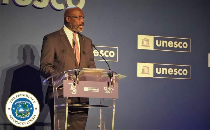 Paris- November 13, 2021: President George Weah on Friday, November 12, addressed the 41st general conference of UNESCO in France. Speaking at the forum, the president said the world can never be a better place so long as there is discrimination between men and women. He believe that men and women are equal citizens, and should therefore enjoy equal opportunities, and have equal access to knowledge and skills, if a society is to develop to its maximum potential
