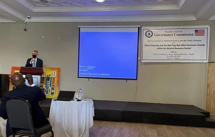 Monrovia- November 25, 2021: USAID Liberia Mission Director Jim Wright on Wednesday, November 24, 2021, said that illicit natural resource financing and trade is a serious problem that robs Liberia of money it needs to fund its development agenda and address extreme poverty and social vulnerability. He spoke at a national dialogue on illicit financing in the natural resource sector in Monrovia organized by the Governance Commission.