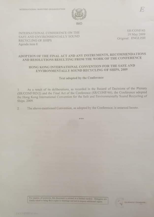 The last legislation from the President’s Communication is Hong Kong Convention for the safe Environmentally Sound Recycling of Ships, 2009 (Hong Kong Convention).