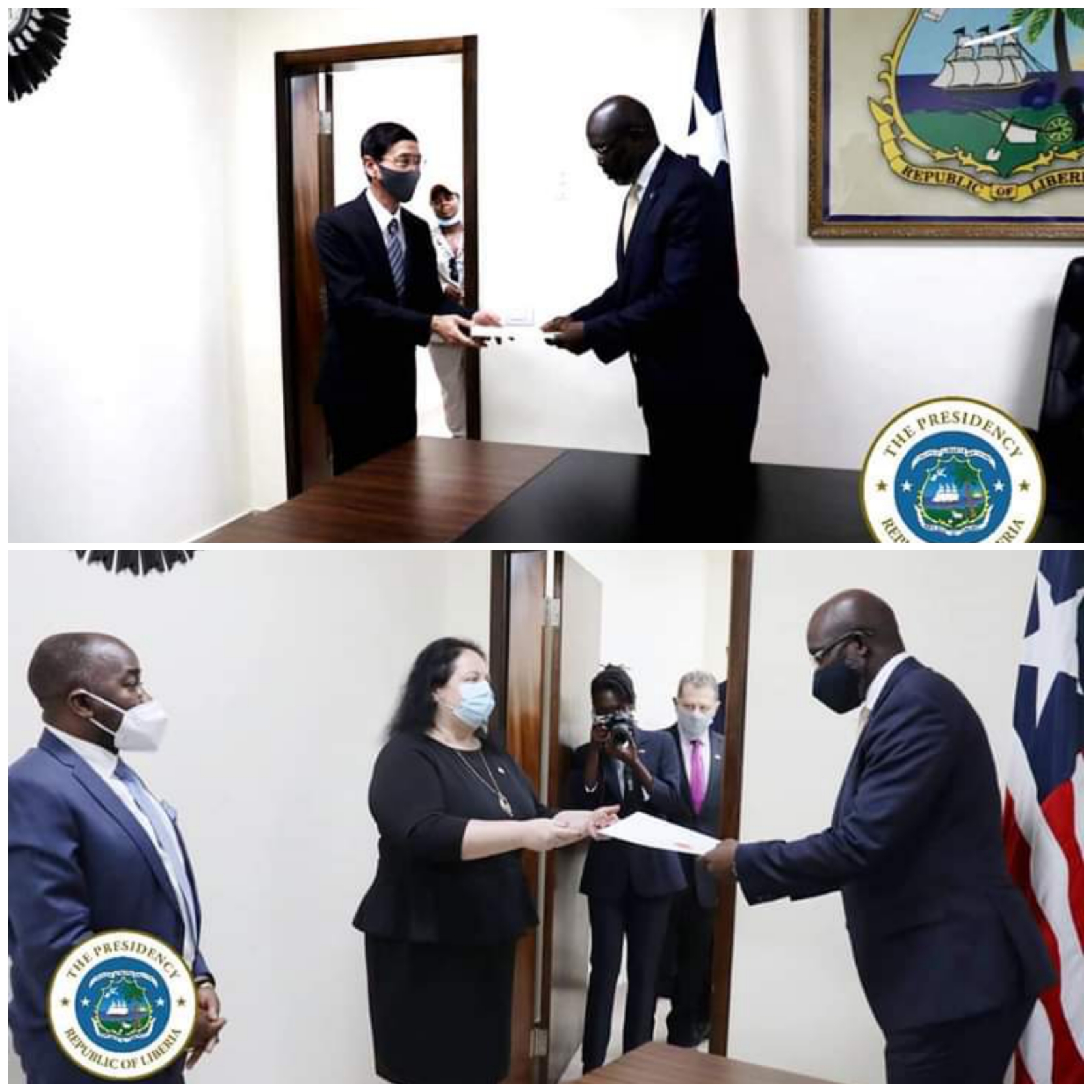 Monrovia, Liberia – March 18, 2022: The Ambassadors of the Republic of Japan and the State of Israel today, March 18, 2022, presented their Letters of Credence to the President of the Republic, H. E. Dr. George Manneh Weah at the Cabinet Room of the Executive Mansion.
