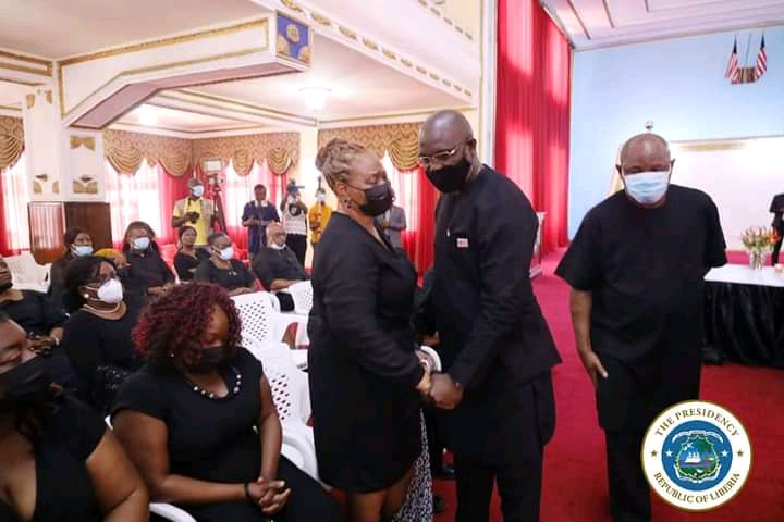 Before performing the rather mournful act at the Centennial Memorial Pavilion on Ashmun Street, President Weah comforted members of the bereaved family, including Mrs. Comfort Sawyer, wife of the deceased.