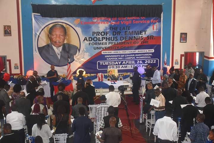 Monrovia- April 27, 2022: The University of Liberia (UL) has held a vigil service for its former president, the late Prof. Dr. Emmet A. Dennis, who died on March 6, 2022 in Englewood, New Jersey, United States of America.