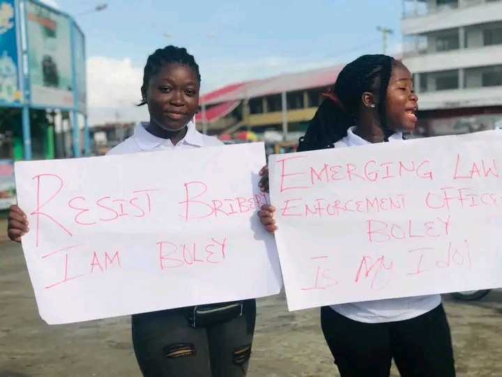 The students gathered early Friday morning, June 24, 2022, at the square in Via Town, on the Bushrod Island, one of the prominent spots from which officer Boley ran his daily routine in directing traffic.