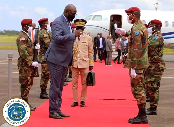 Monrovia, Liberia- July 4, 2022: The President of the Republic, H.E. Dr. George Manneh Weah, is back in the country following successful participation in the 61st Summit of Heads of State and Government of the Economic Community of West African States (ECOWAS).