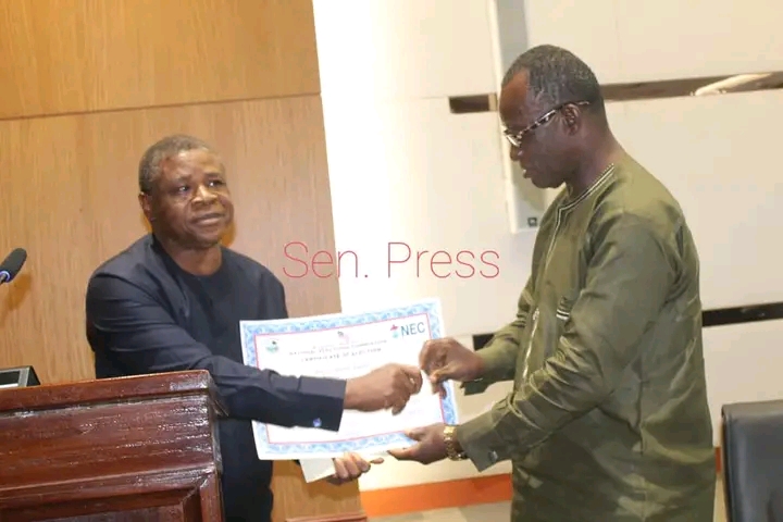 Monrovia- July 14, 2022: In keeping with Rule 1, Section 1 and 2 of the Senate Standing Rules, newly elected Lofa County Senator, Cllr. Joseph K. Jallah has submitted his Certificate of Election and other Credentials to the Plenary of the Liberian Senate.