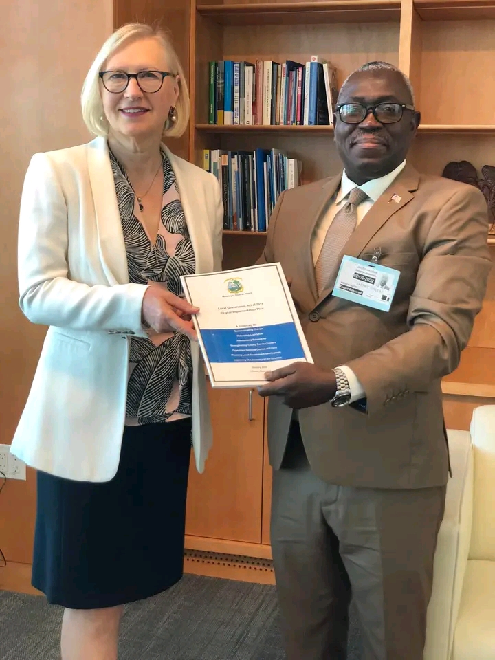 Minister Sirleaf was accompanied to the meetings by Ms. Cecilia Forgbe Wreh McGill, Deputy Permanent Representative of Liberia to the United Nations, and Mr. Emmanuel Wheinyue, Technical Focal Person in the Officer of the Minister of Internal Affairs.