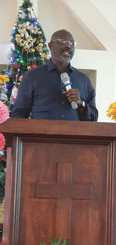 PRESIDENT GEORGE MANNEH WEAH SPEAKING TO THE CONGREATION AND CITIZENS OF LIBERIA DURING THE DIVINE WORSHIP SERVICE