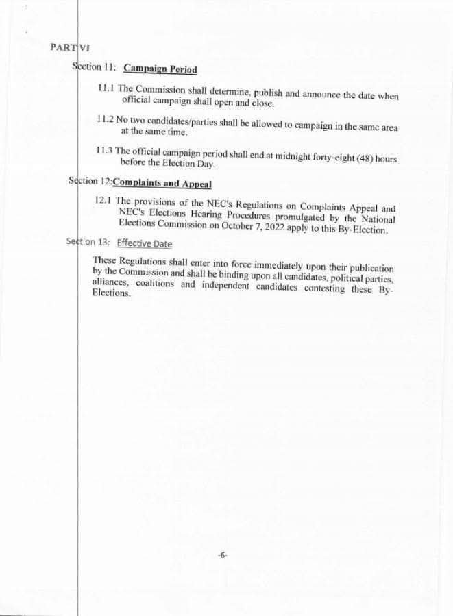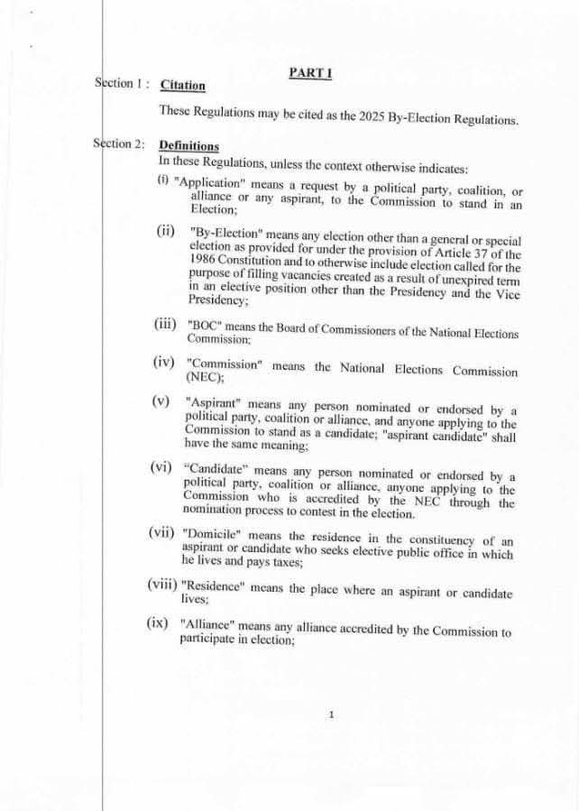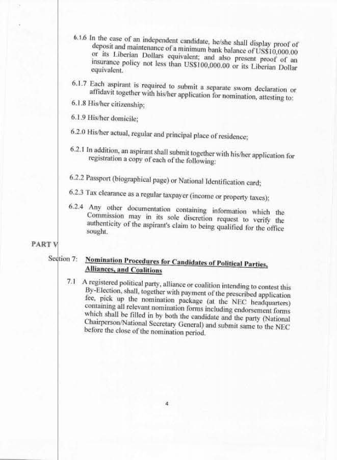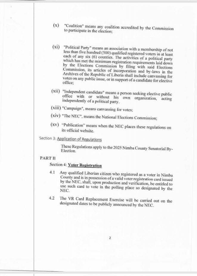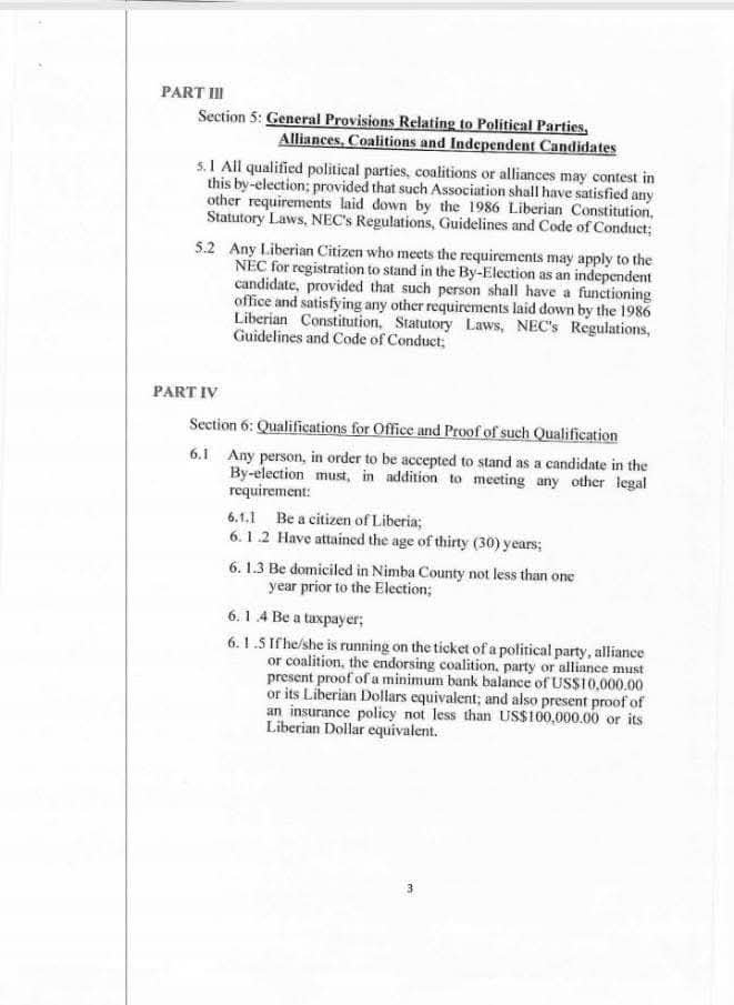 The new regulations took effect immediately upon publication and are specifically applicable to the Nimba County election.